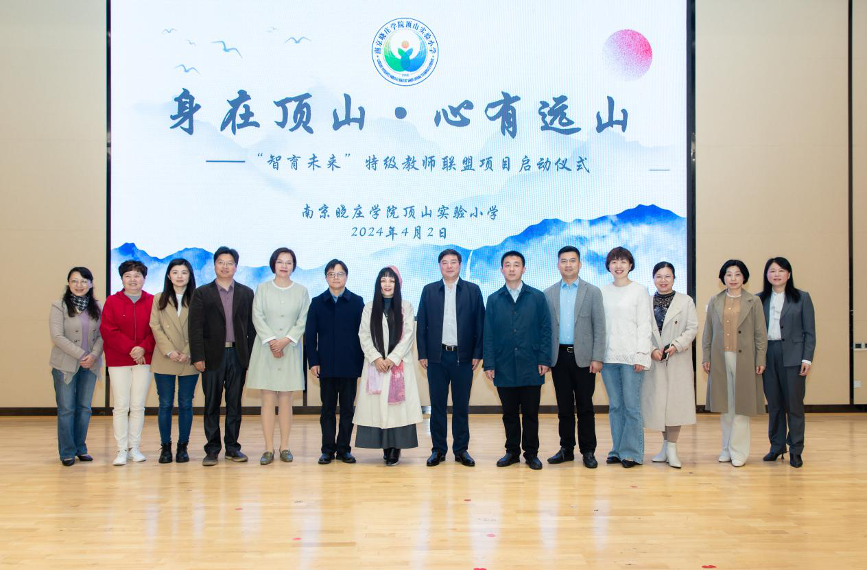 近日,“智育未来”特级教师联盟项目启动仪式在南京晓庄学院顶山实验小学定向河校区报告厅举行。江北新区教育和社会保障局党工委副书记周桂松、南京晓庄学院基础教育规划处处长张边江、顶山街道党工委组织委员朱奕、特级教师代表、顶山片区骨干教师及学校教师代表、学生代表、家长代表等200余人参加活动。
