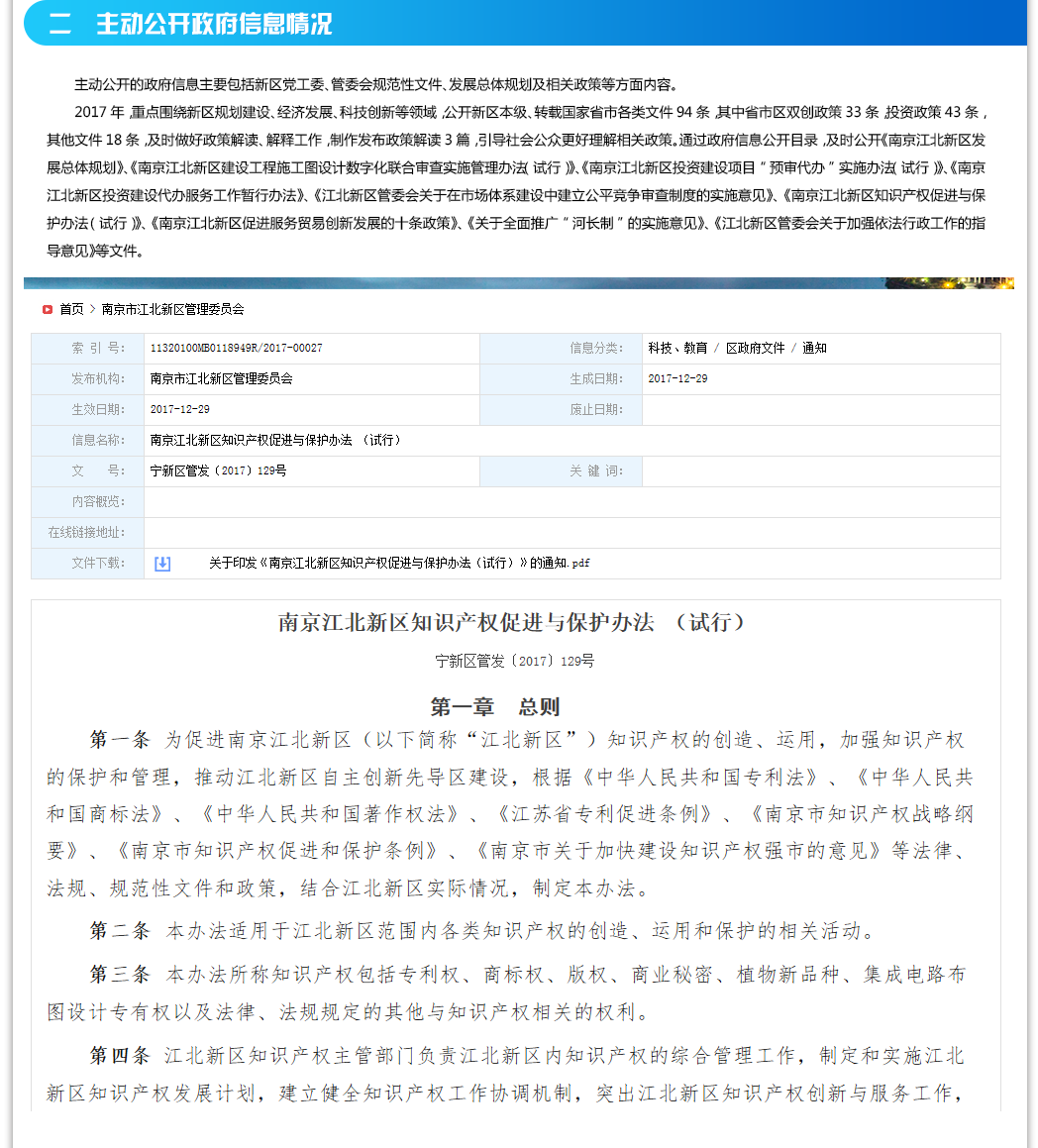 附件:南京市江北新区2017年政府信息公开工作年度报告
