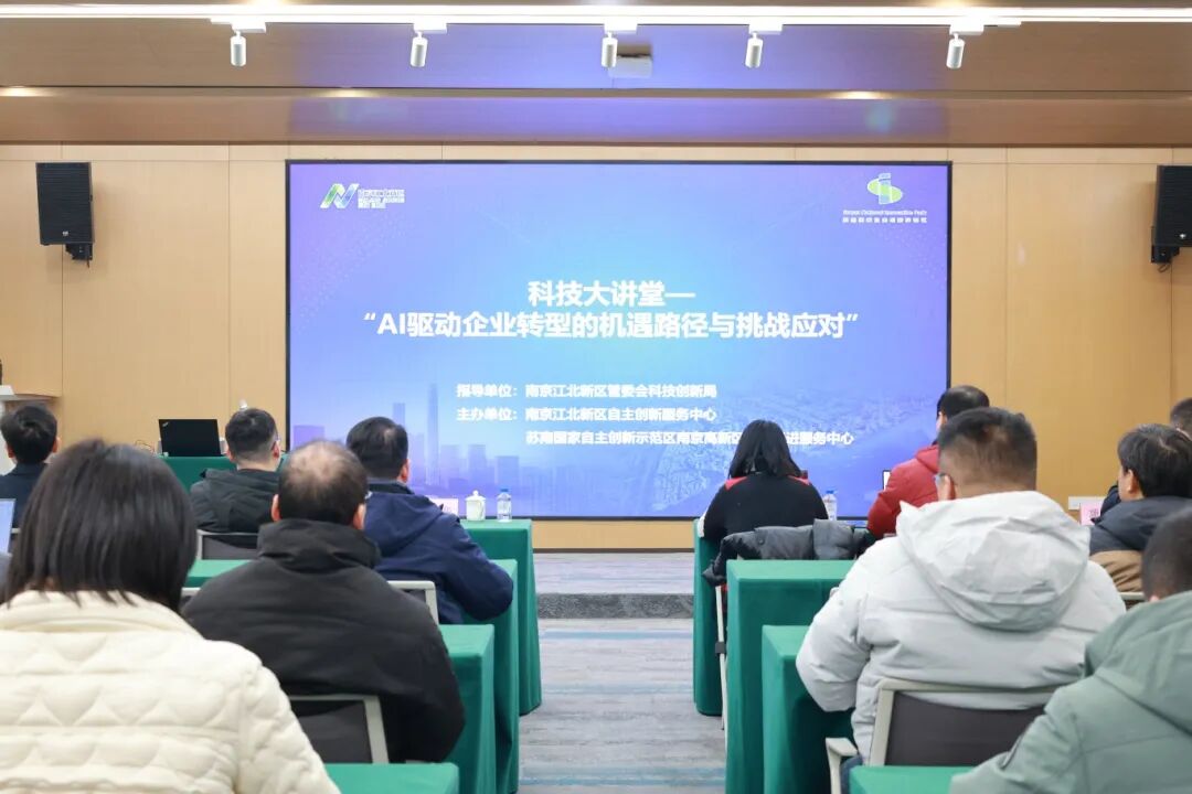 1月27日下午,由南京江北新区科技创新局指导,江北新区自主创新服务中心、苏南国家自主创新示范区南京高新区建设促进服务中心主办的“AI驱动企业转型的机遇路径与挑战应对”专题活动在江北新区自贸金融大厦二楼路演中心成功举办。