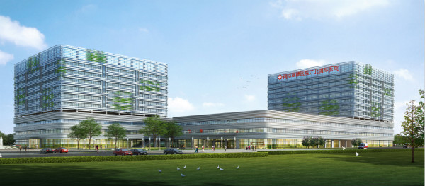 江北国际医疗中心位于浦珠路以南,石佛路以东,占地面积215亩,总建筑面积39.5万平方,预计总投资约33亿元。该项目分两期建设,其中一期建筑面积为16.7万平方米(地上部分11.1万平方米,地下约5.6万平方米),1000张床位,投资约15亿元,由南京鼓楼医院入驻运营,并按照“一院两区”的院区化管理模式建设江北国际医院。以“国际化、高端化、特色化和市场化”为战略目标,以“小综合、大专科、公共服务平台”为发展方向,采用“N个支撑平台+ X个专科中心”的创新诊疗模式,目前建设中美国际口腔中心、中瑞国际肿瘤综合治疗(CCC)中心、高端辅助生殖中心三大医学专科中心已协议入驻,确保用全新的风格、全新的模式、全新的机制,打造一所国内领先、国际一流的三级甲等综合医院。项目于2013年启动,主体已于2016年底封顶,2018年初已进行局部试运行,目前正在进行设备招标采购、内装装修、景观提升等工作,预计2018年年底前将全面投入运营。