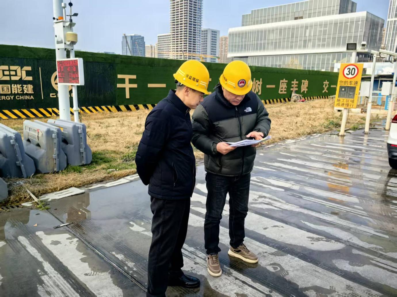 近期,为严格落实重污染天气应急管控要求,环水局副局长毛春明带队对辖区内建设项目扬尘管控情况开展巡查,并联合建设与交通局、综合行政执法局、交警等部门对地下空间一区3标段进行渣土验收联合检查,现场宣贯扬尘、噪声相关法律法规,要求施工单位严格落实降尘减噪措施,减少施工扰民。