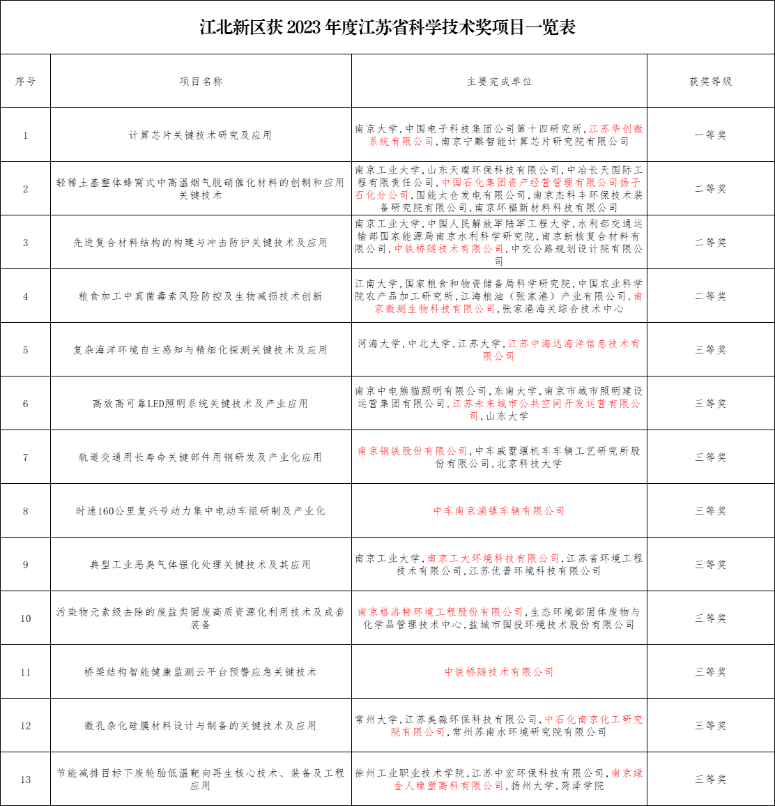 近日,全省科技大会暨全省科学技术奖励大会召开。会上,备受关注的2023年度江苏省科学技术奖揭晓,南京获奖数占全省的63.79%,其中,江北新区13个企业项目获奖,数量位居全市前列。