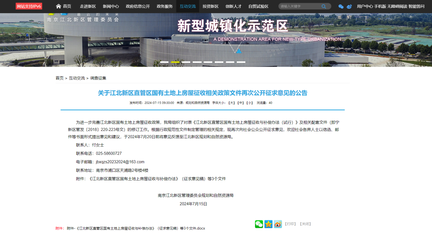 关于江北新区直管区国有土地上房屋征收相关政策文件再次公开征求意见的结果反馈