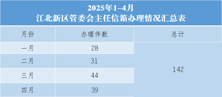 2025年1-4月江北新区管委会主任信箱办理情况汇总表