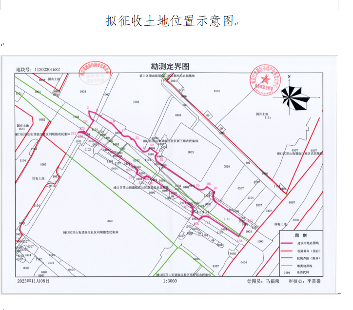根据《中华人民共和国土地管理法》第四十七条、第四十八条,《中华人民共和国土地管理法实施条例》第二十七条、第二十八条,《江苏省土地管理条例》第三十七条,《市政府关于印发南京市集体土地征收补偿安置办法的通知》(宁政规字〔2022〕4号)第十一条的规定,依据宁(江北新区)拟征告〔2023〕142号公告开展的拟征收土地现状调查和社会稳定风险评估结果,现将拟订的滨江实验学校配套道路改造工程项目征地补偿安置方案有关事项公告如下: