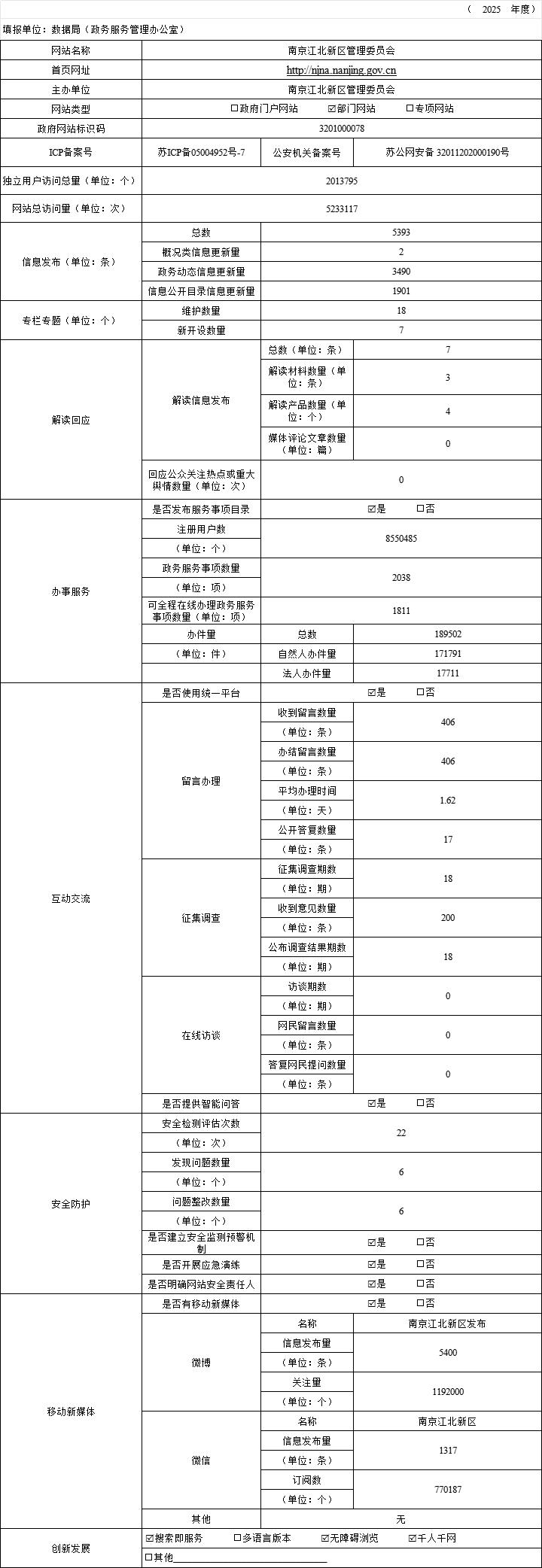 南京江北新区管委会政府网站工作年度报表(2025年度)