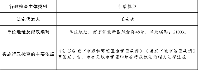 南京江北新区管理委员会综合行政执法局(城市管理局)行政检查主体情况