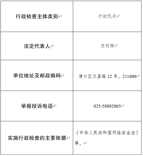 南京市浦口区互联网信息办公室行政检查主体情况公示