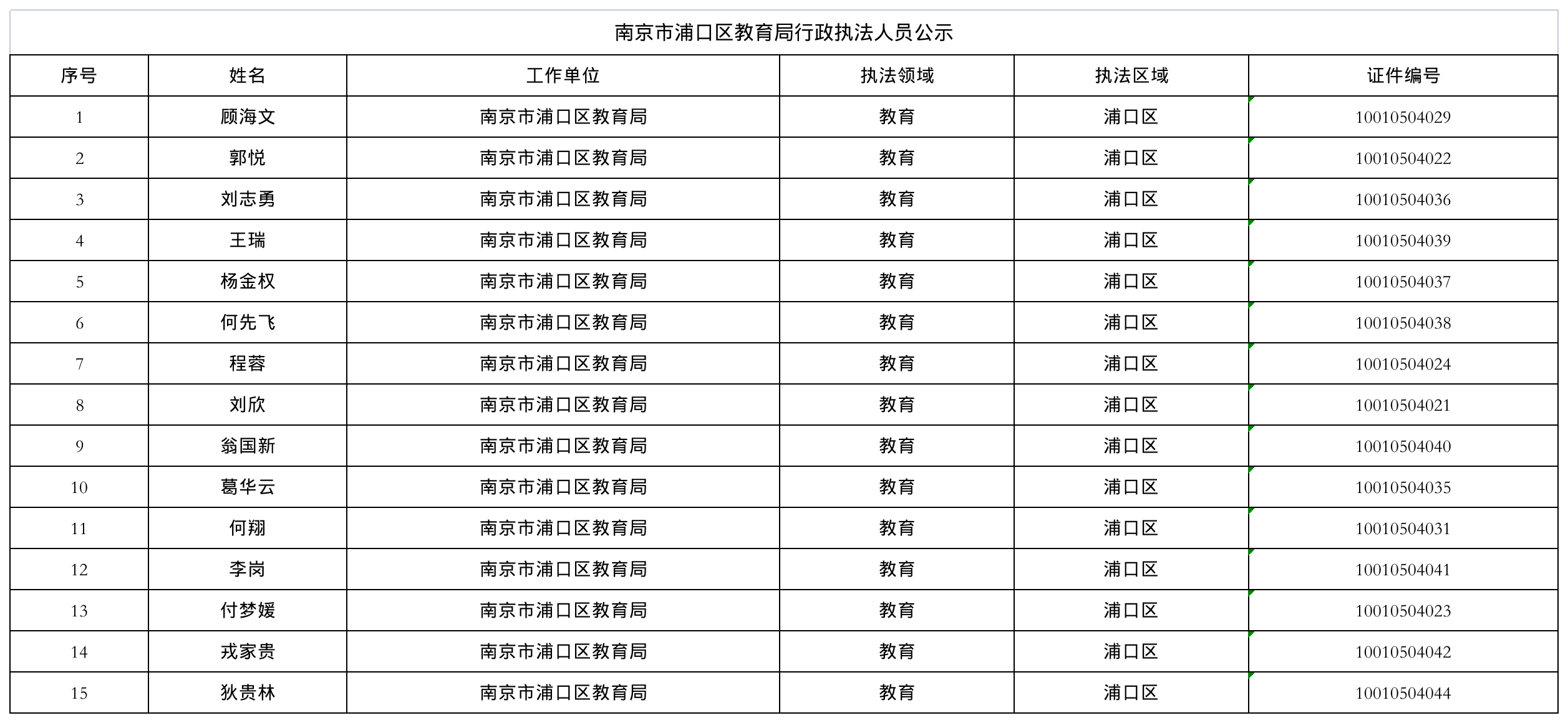 南京市浦口区教育局行政执法人员公示