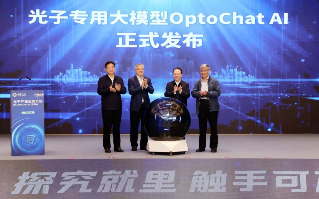 会上,由南智光电联合生态伙伴共同开发的光子专用大模型OptoChat AI正式发布,该模型系面向光子领域全产业链的专用人工智能大模型,集成了超过30万条光子芯片相关专利、文献和行业数据资源,拥有强大的数据分析与智能算法能力,能够显著提升光电芯片的研发效率与产业转化速度。会上进行了OptoChat AI大模型推介与功能演示,发布了共建全球光子产业生态倡议,多家生态合作伙伴共同倡导以开放为纽带、以创新为引擎,共同构建协同、共赢、可持续的全球光子产业新生态。