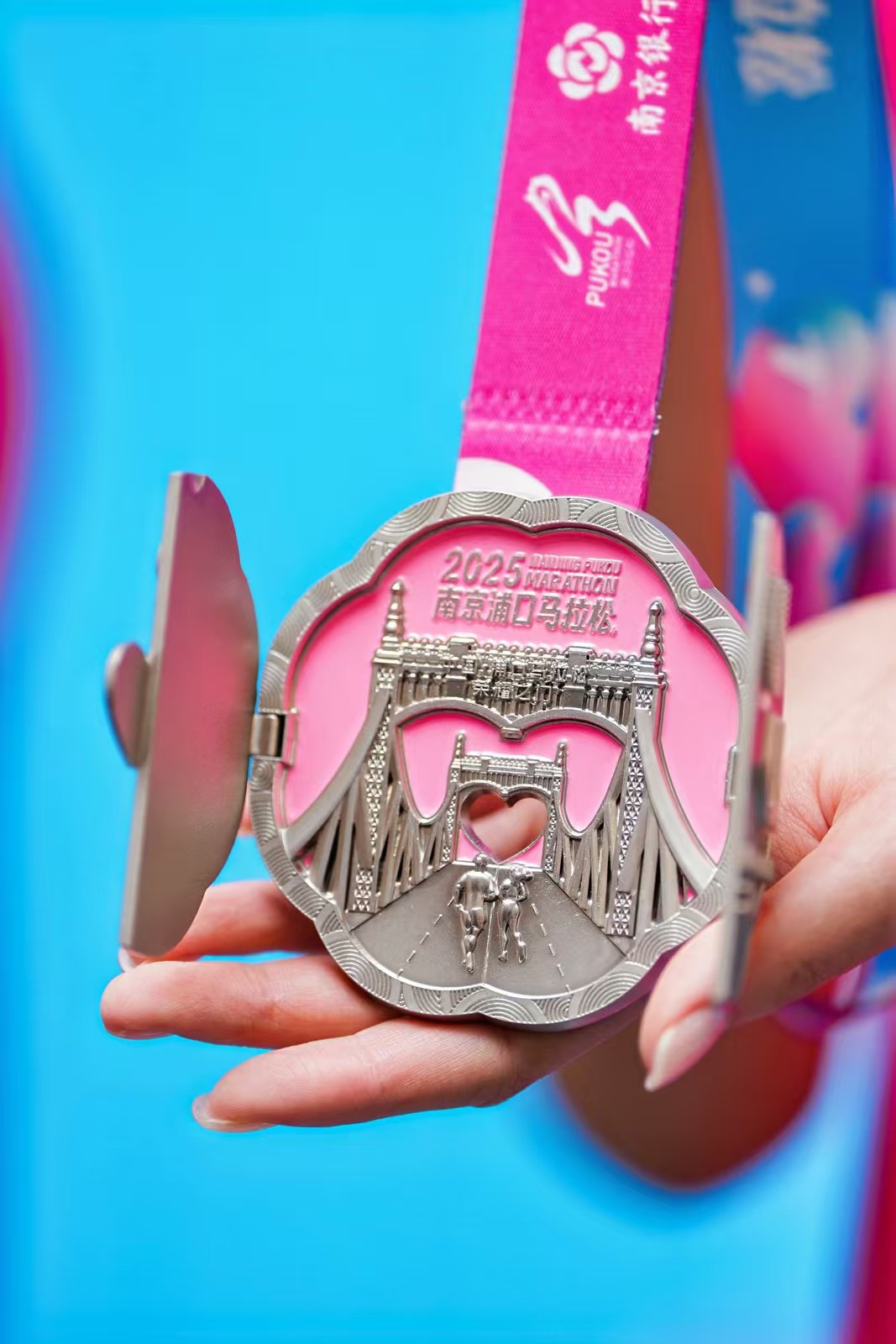 主持人:感谢主题曲的精彩呈现。如果说主题曲是流淌在赛道上的韵律,那么接下来这件作品,无疑将成为所有跑者拼搏之后,凝固在掌心的城市心跳!“让我们屏息以待——2025南京浦口马拉松完赛奖牌即将破茧!”