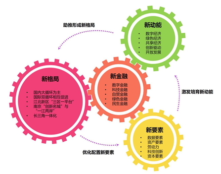 江北新区立足内外双循环新格局、整合数字与科技新要素、激发经济与社会新动能,构筑“四新”新金融产业体系,实现金融服务体系转换升级。