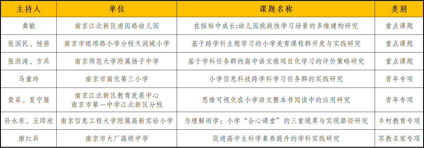近日,2024年度省教育科学规划课题立项名单公布,江北新区基础教育领域,有7项课题成功入选。