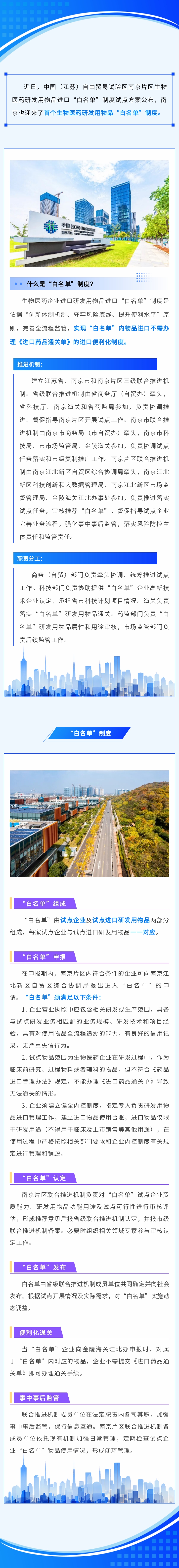 中国(江苏)自由贸易试验区南京片区生物医药研发用物品进口“白名单”制度试点方案公布